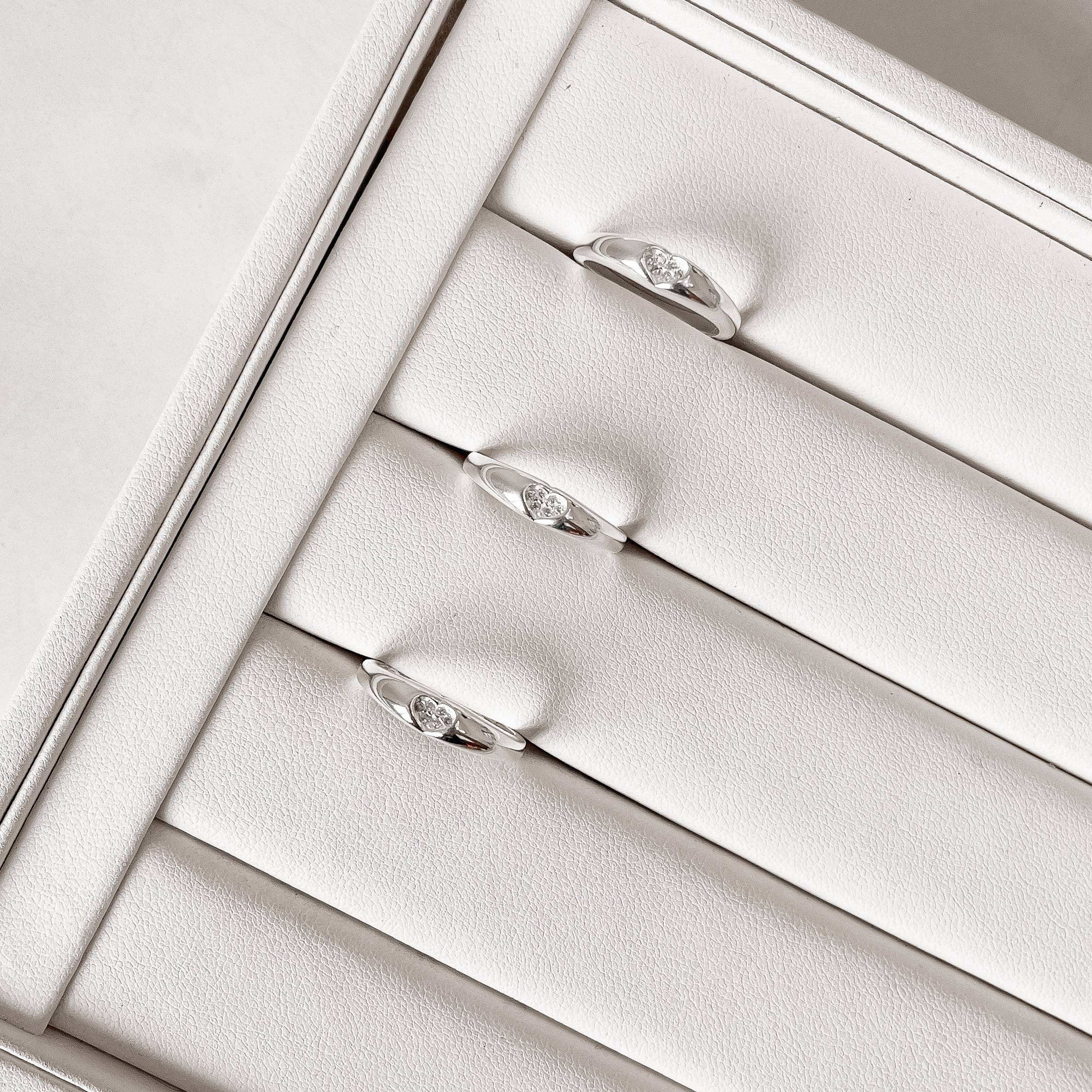Anel largo detalhe coração cravejado prata 925